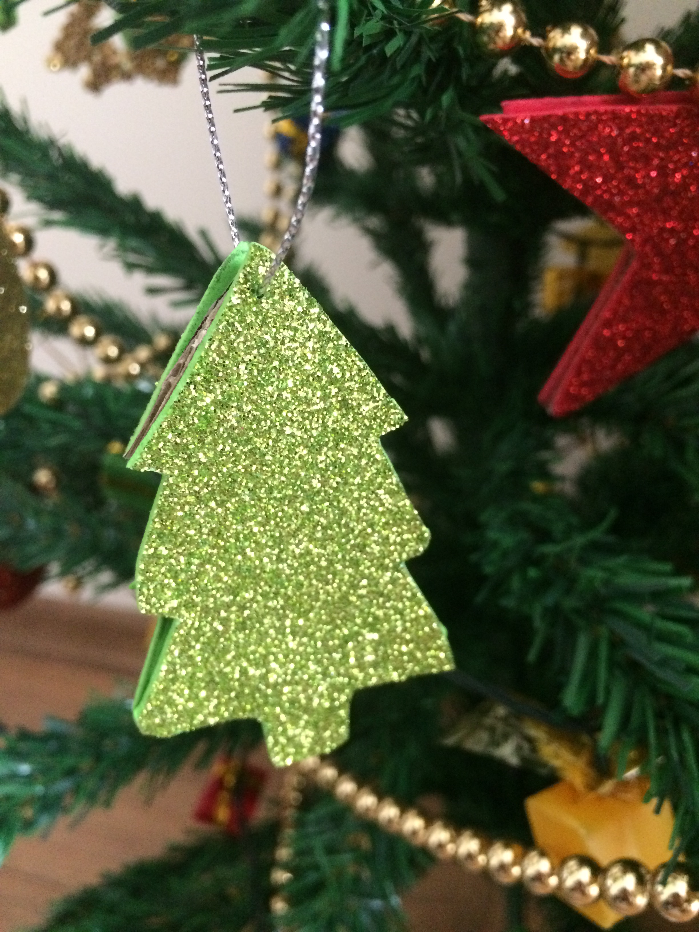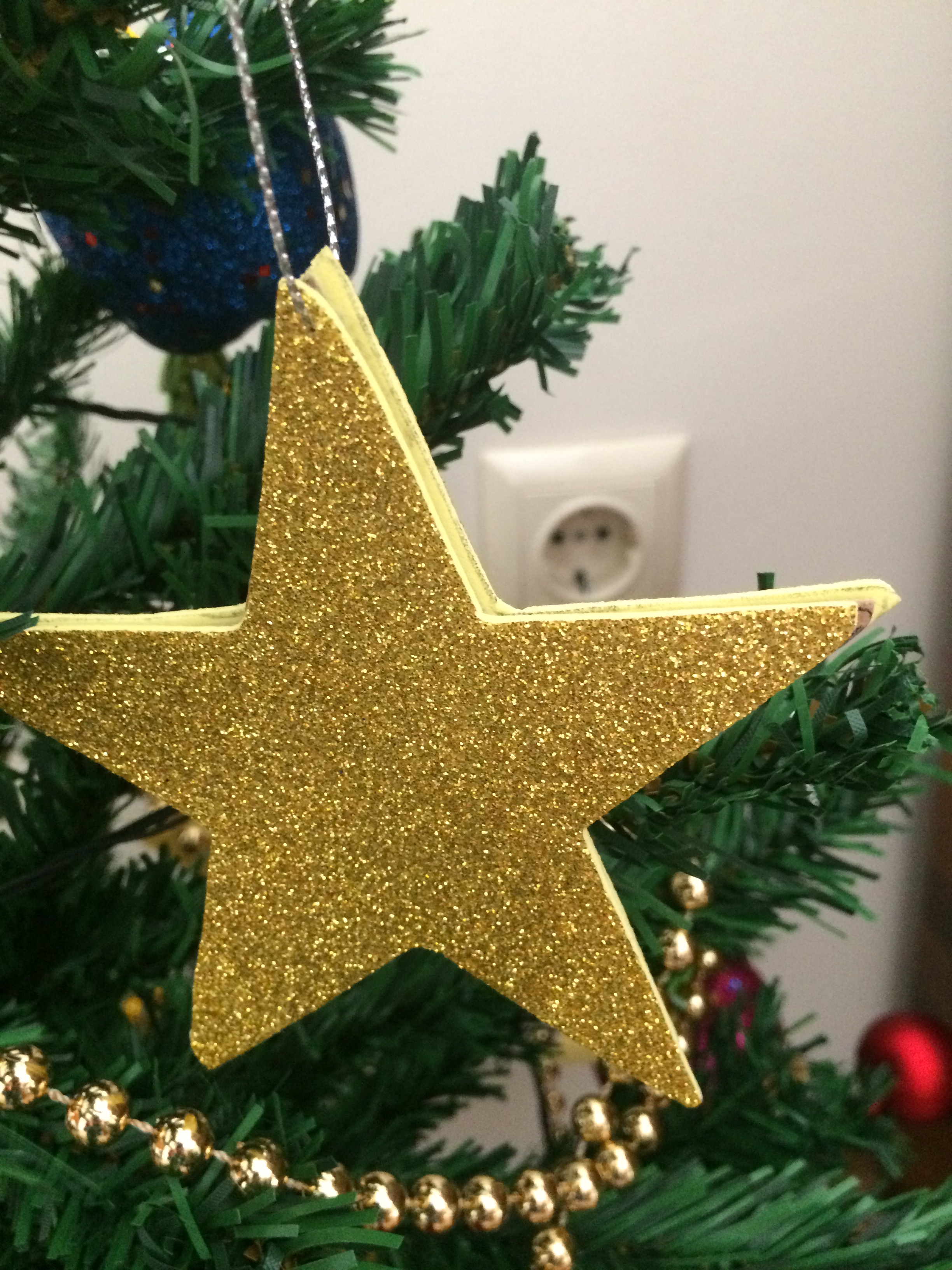 Evde daha önce aldığım böyle parlak eva kağıtlarım vardı. Onları yılbaşı konseptine uygun şekillerde yukarıda gördüğünüz gibi kestim.Ben aralarına karton da kesip koydum daha sağlam olması için,isterseniz siz koymayabilirsiniz. Arkalı önlü olması için her şekilden ikişer tane kesiyorsunuz eva kağıdı ve sonra yapıştırıyorsunuz. Sonra süsün ucundan parlak bir ip geçiriyorsunuz. Hepsi bu kadar !